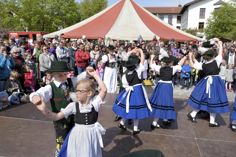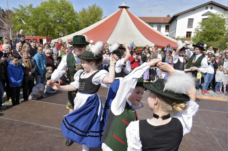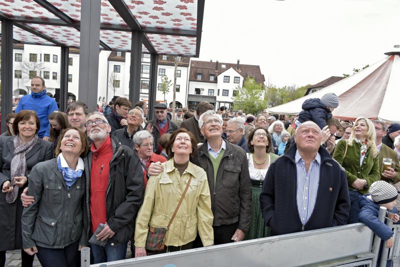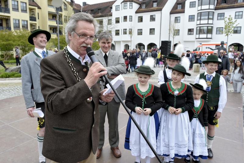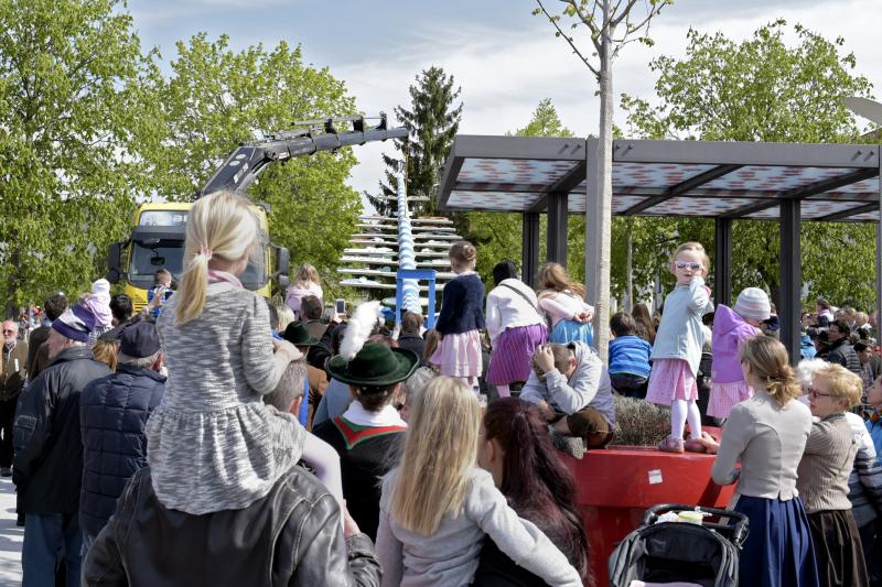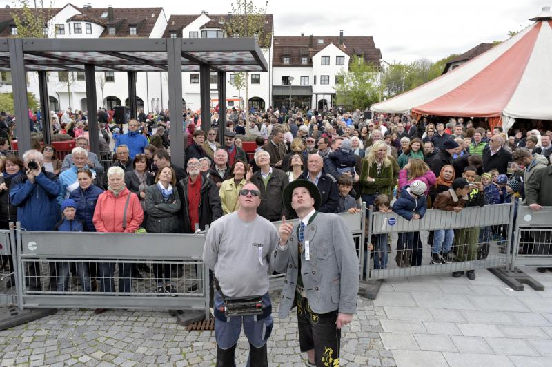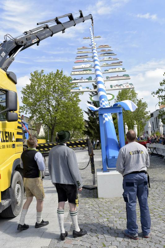 Viele Zuschauer waren dabei als am 1. Mai 2017 der neue Maibaum am Marktplatz errichtet wurde. Das anschließende Maibaumfest gestaltete der Trachtenverein D`Almarösler.