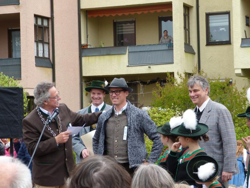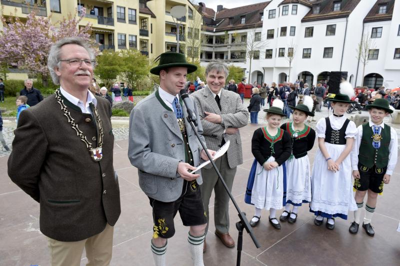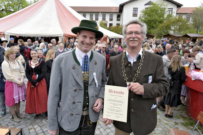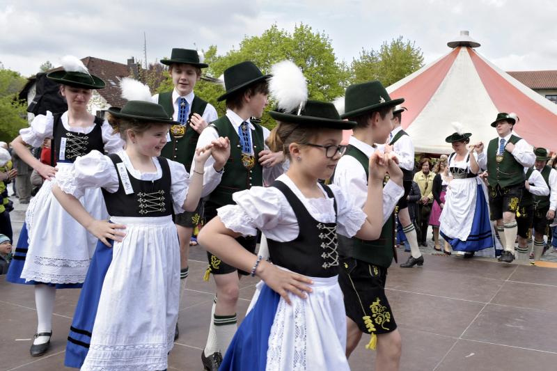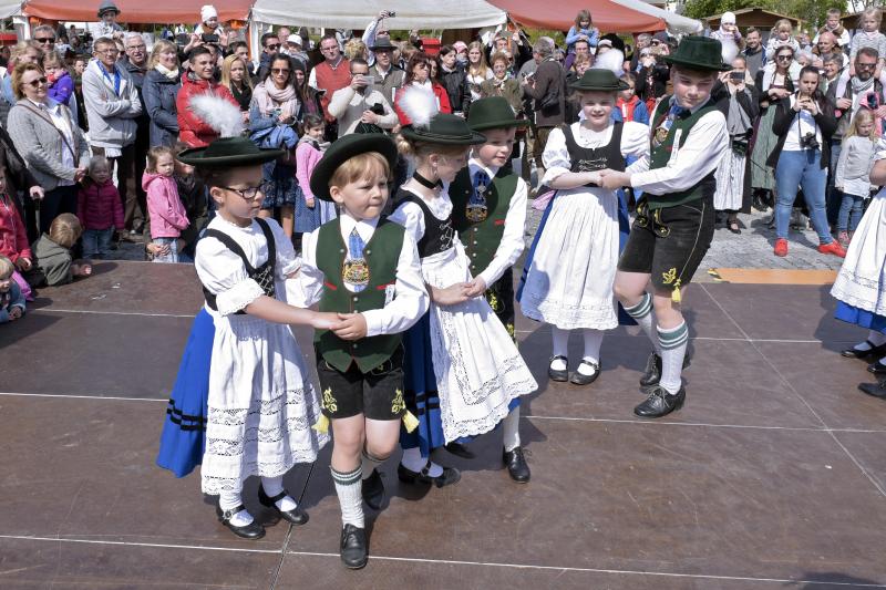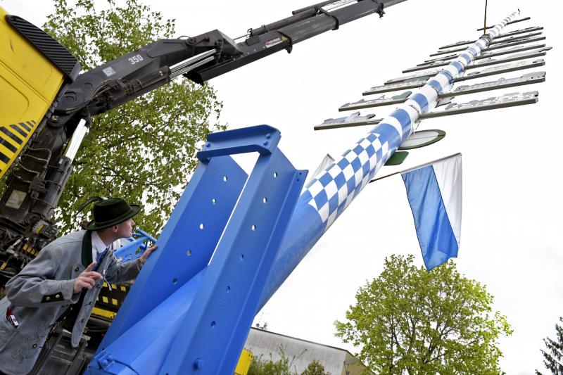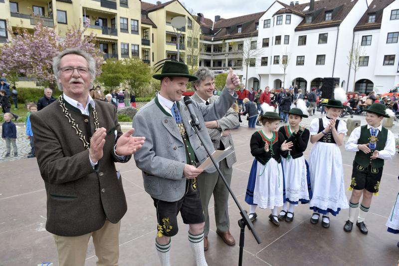 Viele Zuschauer waren dabei als am 1. Mai 2017 der neue Maibaum am Marktplatz errichtet wurde. Das anschließende Maibaumfest gestaltete der Trachtenverein D`Almarösler.